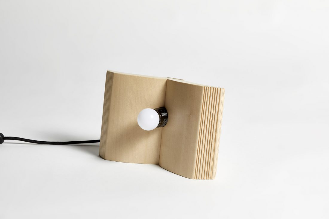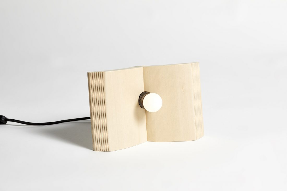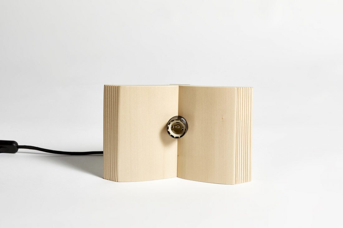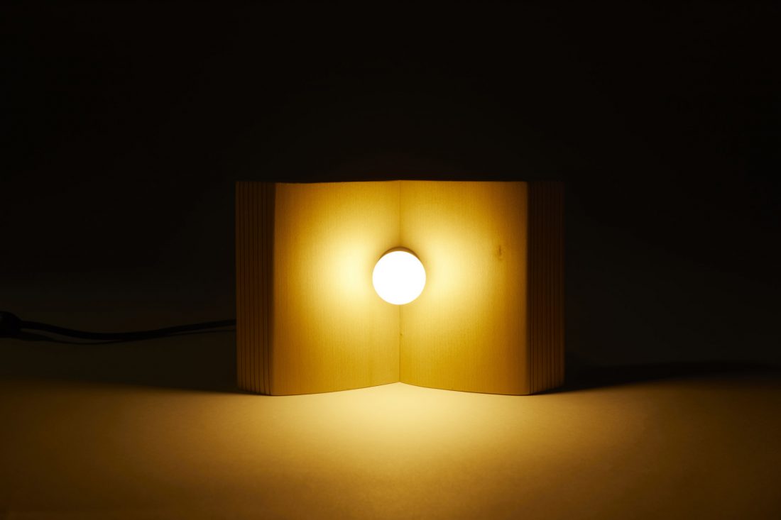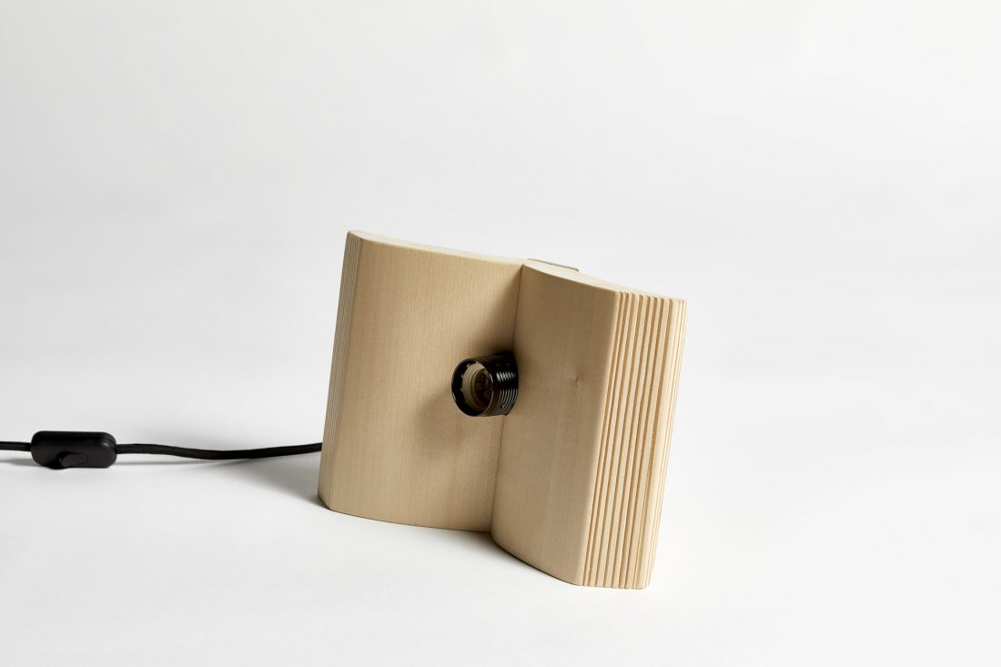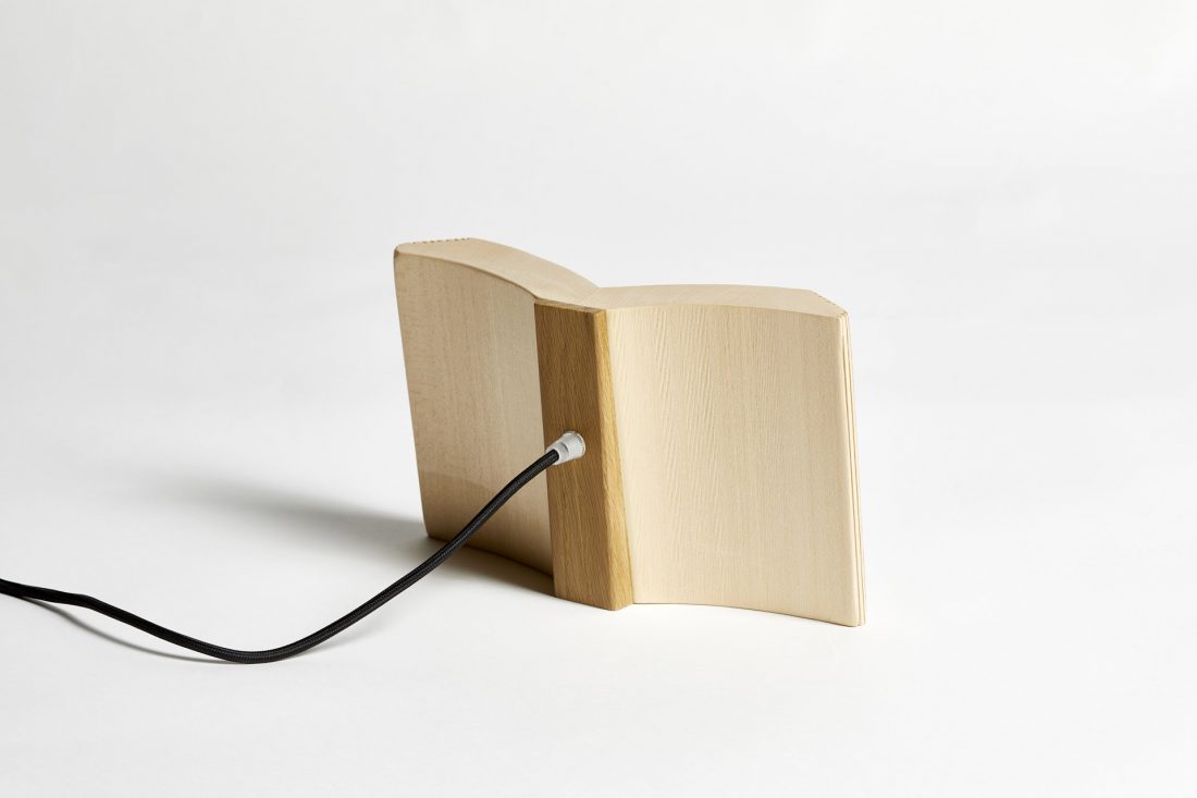 Scultura a forma di libro ricavata da un pezzo di tiglio massello. 220v E27